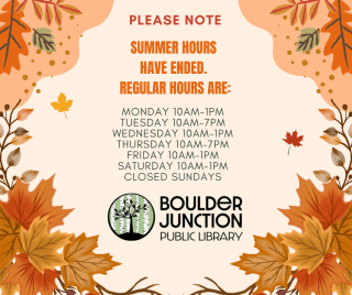 Summer hours ended Tuesday, September 30th. Regular hours are now in effect until next May. Our hours are at the bottom of this web page!